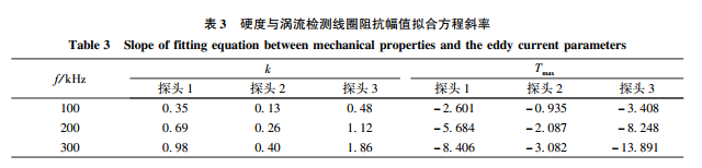 1) 在一定范圍內,45 號鋼硬度與渦流檢測線圈阻抗幅值保持一定的線性關系,其線性擬合系數為 0. 92. S136 鋼硬度與渦流檢測線圈阻抗幅值呈現拋物線非線性關系,其擬合系數為 0. 94.